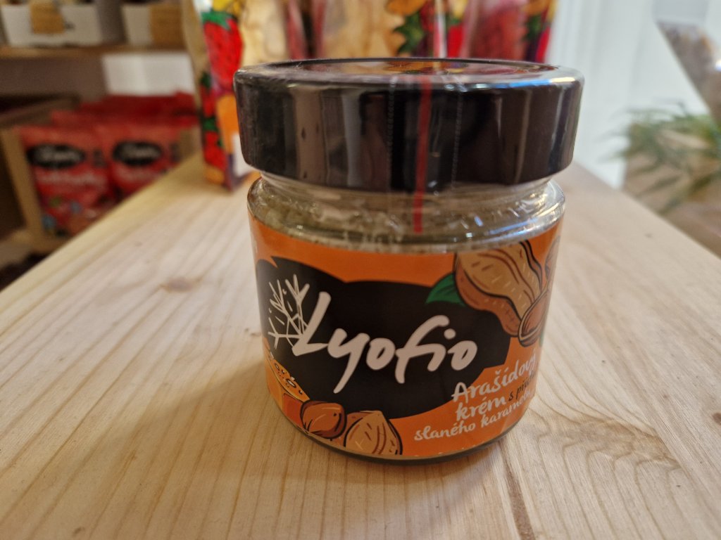 Složení: Arašídy loupané pražené 66,3 %, bílá čokoláda s karamelem 24 % (cukr, kakaové máslo, sušené mléko, sušená syrovátka, karamelizovaný cukr (1,1 %), sušené mléko odstředěné, emulgátor: sójový lecitin, přírodní aromata, jedlá sůl) kokosový cukr (5 %), karamelový prášek 5 % (sušené odstředěné mléko, syrovátka, cukr, máslo), jedlá sůl himalájská. Může obsahovat stopy skořápkových plodů.