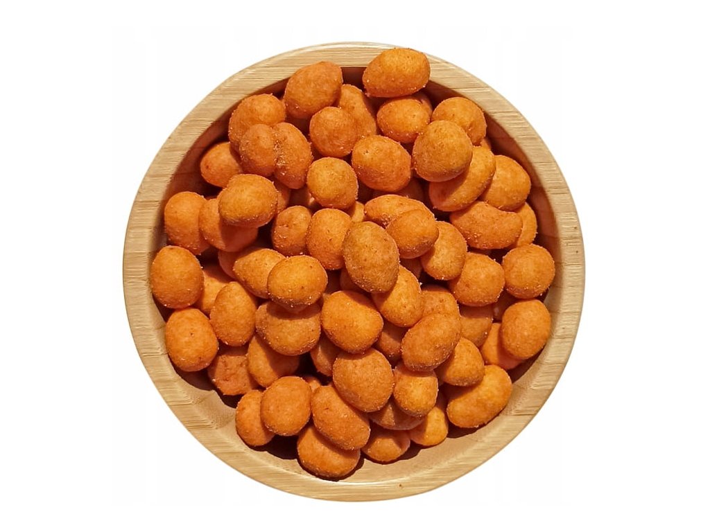 Složení: Arašídy 56 %, bramborový škrob, palmový olej, modifikovaný bramborový škrob, cukr, koření 1,65 % (sůl, česnekový prášek, glutaman sodný, barvivo: paprikový extrakt, oxid křemičitý), jodizovaná sůl, řepkový olej, sladká paprika 0,94 %, maltodextrin, uhličitany sodné, chilli paprička, kyselina citronová