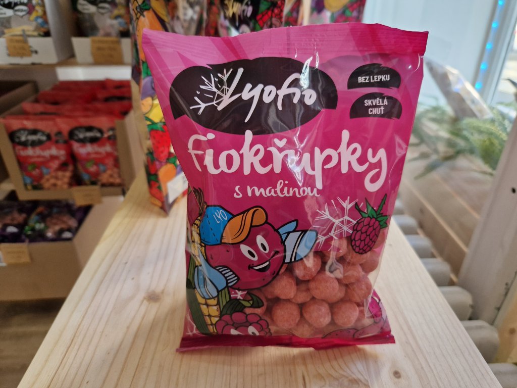 Složení: poleva s jogurtem 64 % (cukr, plně ztužený palmojádrový tuk, sušená syrovátka, sušený jogurt 2 % (mléko, jogurtová kultura), regulátor kyselosti: kyselina citrónová, emulgátor: lecitiny; přírodní aroma), kukuřičné křupky 32 % (kukuřičná mouka 99 %, jedlá sůl), prášek z mrazem sušených malin 4 %. Může obsahovat stopy arašídů, skořápkových plodů, sóji a sezamu.