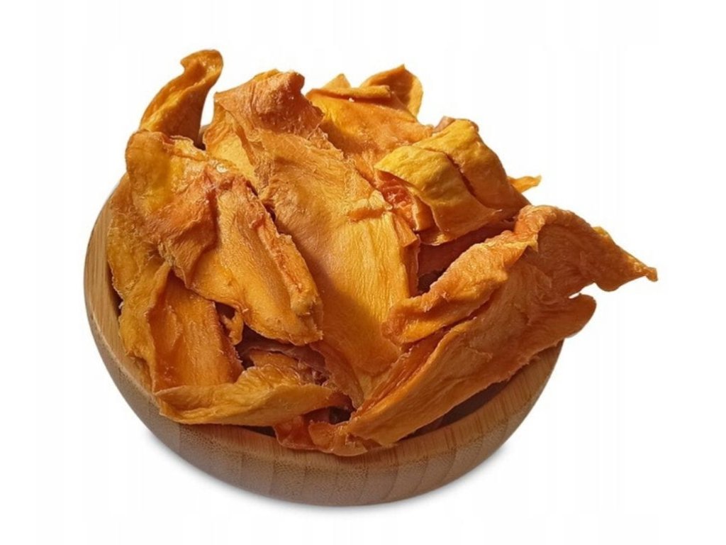 Sušené mango plátky je lahodná, výživná svačina, je také skvělým doplňkem do různých pokrmů, např. do müsli, kaší, kompotů, dezertů, marmelád, zavařenin.